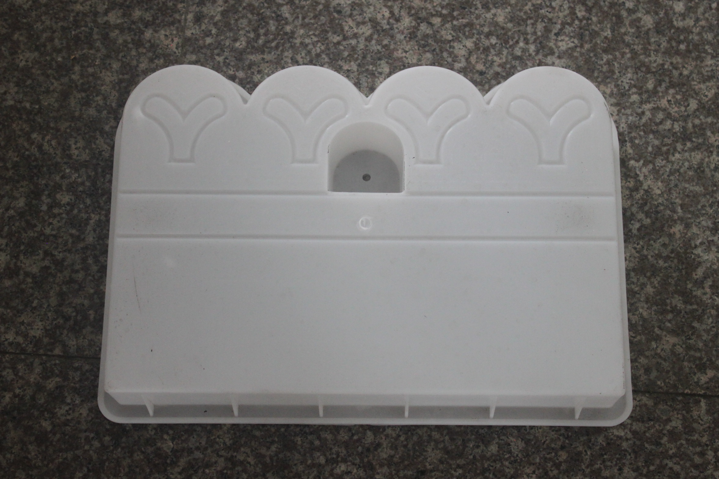 一款比较常规的水泥花池砖模具,模具花纹样式也是市面上较为常见的人字小脚丫图案设计,花池砖模具顶部则以圆弧四波浪结构为主,感觉有点像花池栅栏的味道,但是实用性则更强。