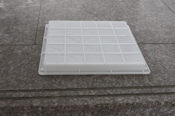 塑料彩砖模盒多以ABS或者PP聚丙烯塑料加工而来,此款采用聚丙烯原料,主要以四拼结构的梅花防滑图案设计,在塑料彩砖模盒底部布置了5X5正方形结构的小方格加强筋,四周每条边则是四条小三角加强筋,有效的提升了梅花图案彩砖模盒在预制过程中的稳定性。