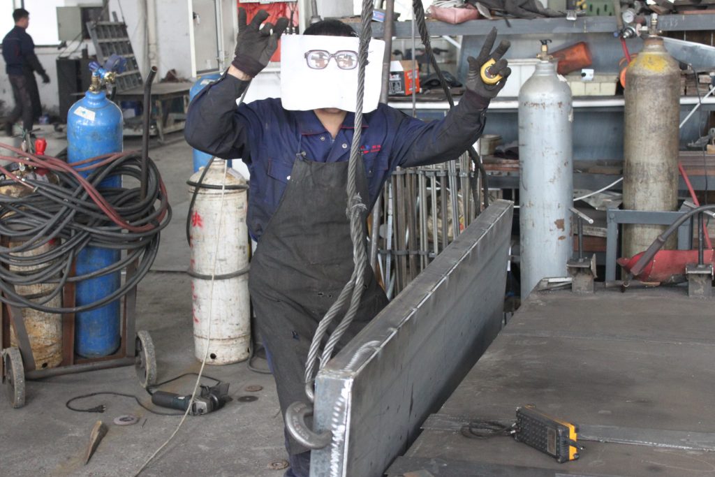 2.焊接,水泥挡渣墙钢模基本框架部件的焊接组合,对于大型钢结构来说,人工搬运显然是费时费力,采用必要的航车起吊,手工配合最为理想。