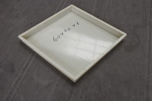 ABS材质的平面路沿石塑料模具,尺寸为较为常用60*60*6厘米,在塑料模具的底部以11*11小方格加强筋设计,侧面四周为9*4跟加强筋设计,极大的缓解了水泥制品塑料模具易变形问题。